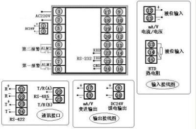 带控制(或报警)输出液位?容积控制仪,输入类型为4~20mA,继电器控制输出,带RS-485通讯,带上下限继电器报警输出,带DC24V馈电输出。