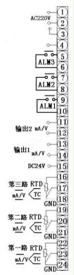 可接3路被测信号,根据用户设定要求完成程序设定,信号采集,报警控制输出,图表显示及记录数据远传的全过程。