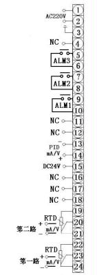 可接3 路被测信号(其中一路可作为反馈信号),根据用户设定要求完成程序设定,信号采集,PID 控制,手/自动无扰切换,报警控制输出,图表显示及记录数据远传的全过程。