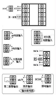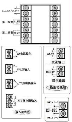 分度号、标准信号以及远传压力信号、毫伏信号的输入。