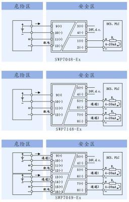 向危险区的变送器提供隔离的工作电源,同时检测回路中的电流,经隔离变送输出相互