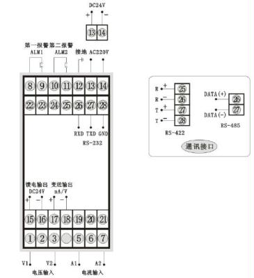⊕可带有一路模拟量变送输出或继电器报警输出,适用于各种测量控制。