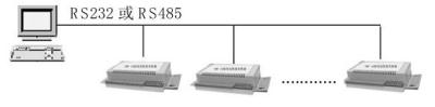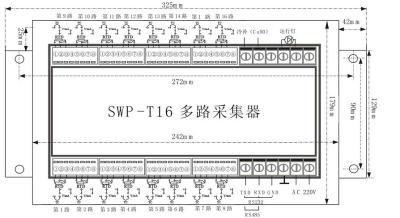 信号输入是万能的 最大可接16台采集器,输入回路可扩充至256路 通讯波特率9600bps 随机提供SWP通讯协议和PC设置软件 |